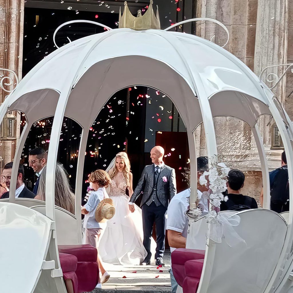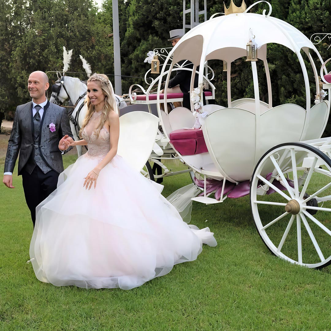 El estilo fantasía representa la magia y el romanticismo propio de un coche de caballos estilo Cinderella, transportando a sus pasajeros a un mundo de cuentos de hadas y ensueño. Inspirado en la icónica carroza de la película «Cenicienta» y elaborado a mano con un meticuloso cuidado por los detalles, su diseño se basa en la célebre calabaza transformada en carroza por el hada madrina.